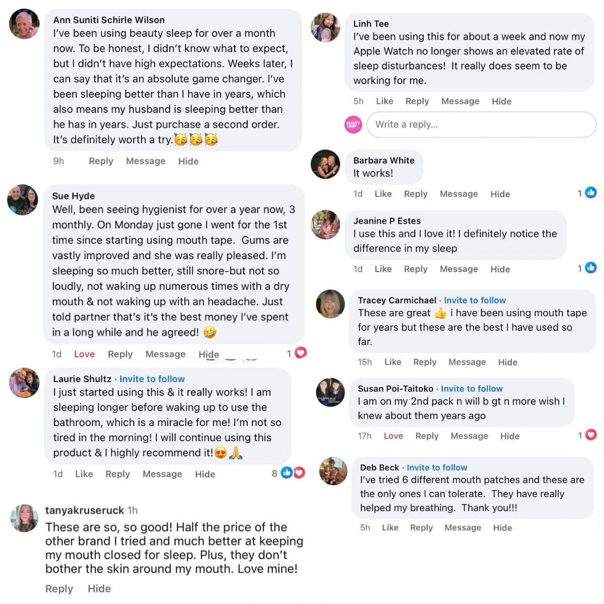 I have tried a few different mouth tapes over the last few years and I have found the Beauty Sleep tape the best. It’s comfortable to wear and successfully keeps my mouth shut during the night. It’s also easy to remove, which is a bonus. It works well with my sleep apnea cpap. Overall I average 7 undisturbed hours sleep a night. Win! Win!